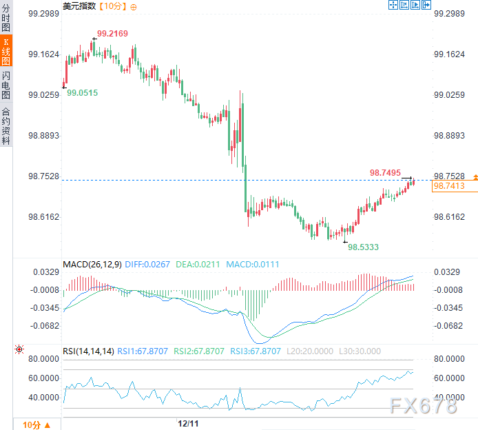 北京时间14:30,美元指数现报98.75。